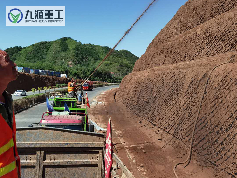 噴播機(jī)是應(yīng)用于邊坡綠化的專業(yè)設(shè)備,通過本設(shè)備將土壤基質(zhì)、綠化草籽、保水劑、黏合劑、肥料等,在噴播機(jī)攪拌罐中與水混合成膠狀的漿液,用泥漿泵將其噴播于坡面上。由于漿液中含有保水材料、黏合材料、各種養(yǎng)分,在保證了植物生長所需的水和其它營養(yǎng)物質(zhì)來源的同時(shí)有效防止雨水沖刷對(duì)噴播材料的破壞,故而植物能夠健康、迅速地成長。